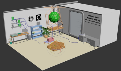 Biomodd results in living immersive art installations. It opens a science fictional world in which biology and technology merge into idiosyncratic, fully operational hybrid systems. Through the grass-roots approach and the collaboration of culturally diverse teams, Biomodd translates the artistry, imagination and vision of a larger community. In this way, the installation does not only propose a visual artistic experience, but also a vision of a co-created future.