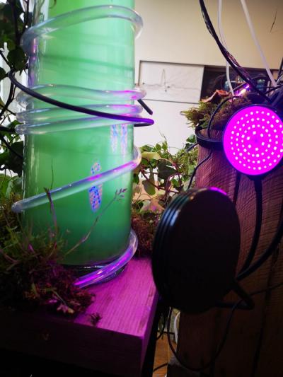 Once completed, the hybrid network is used to run a customized multiplayer computer game. The Biomodd games thematically tie in with the overarching concepts of the project. They are either based on existing open source games, or are developed from the ground up by local team members. As more exhibition visitors join the virtual game, electronic components heat up, boosting the growth of surrounding plants, including algae. Such radical interdependencies are in fact echoed throughout the entire realization of the project: in the community of artists, scientists and designers who build Biomodd; among the visitors who directly participate in the game; and in the physical components of the installation (including the dependency between hot microprocessors and living chloroplasts).